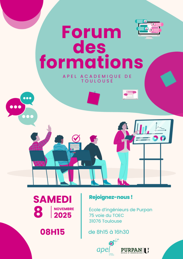 L’Apel académique de Toulouse vous donne rendez-vous le samedi 8 novembre 2025 à l’École d’ingénieurs de Purpan pour une journée d’échanges et de découvertes autour des formations.